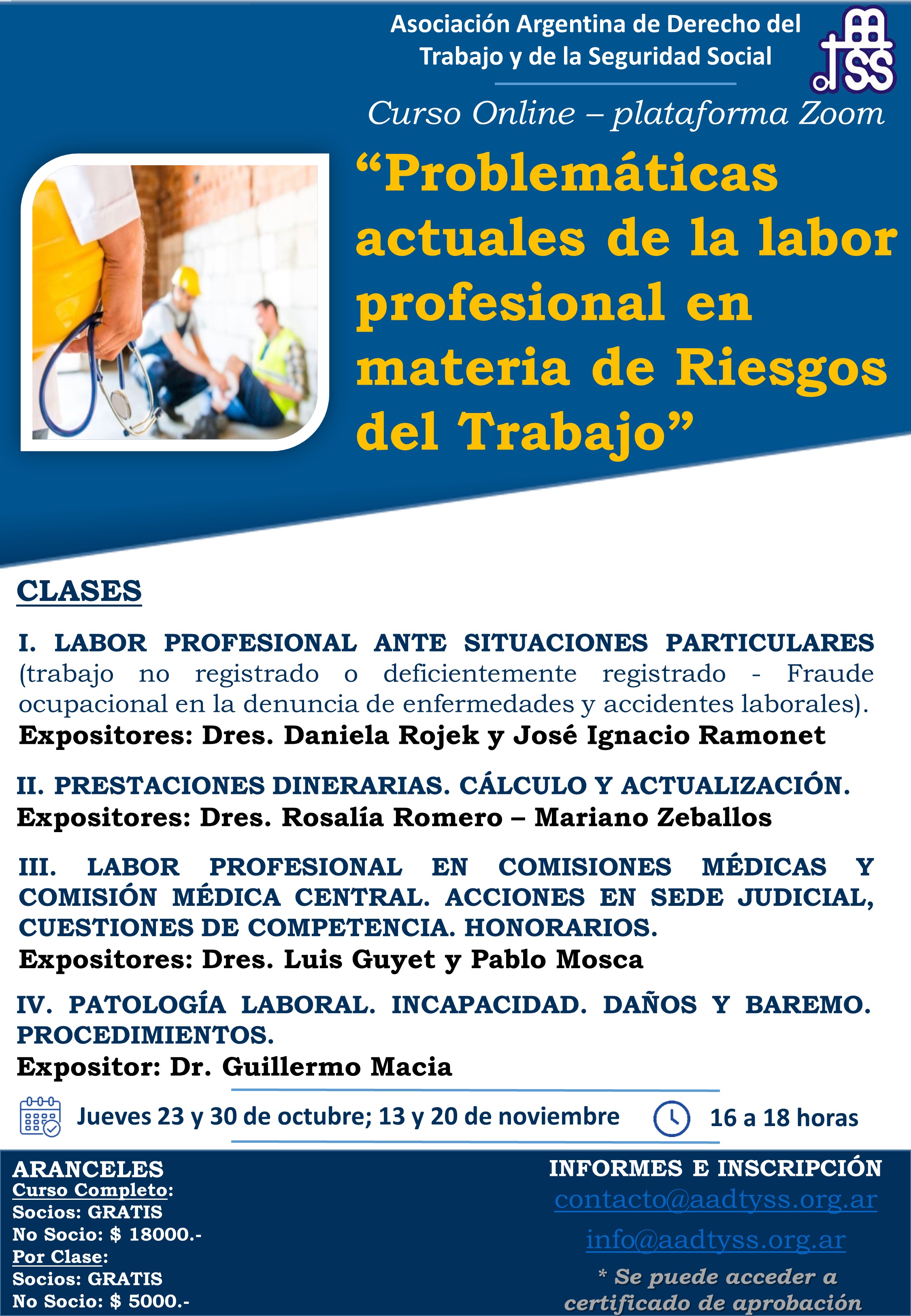 Inscripción: contacto@aadtyss.org.ar o info@aadtyss.org.ar