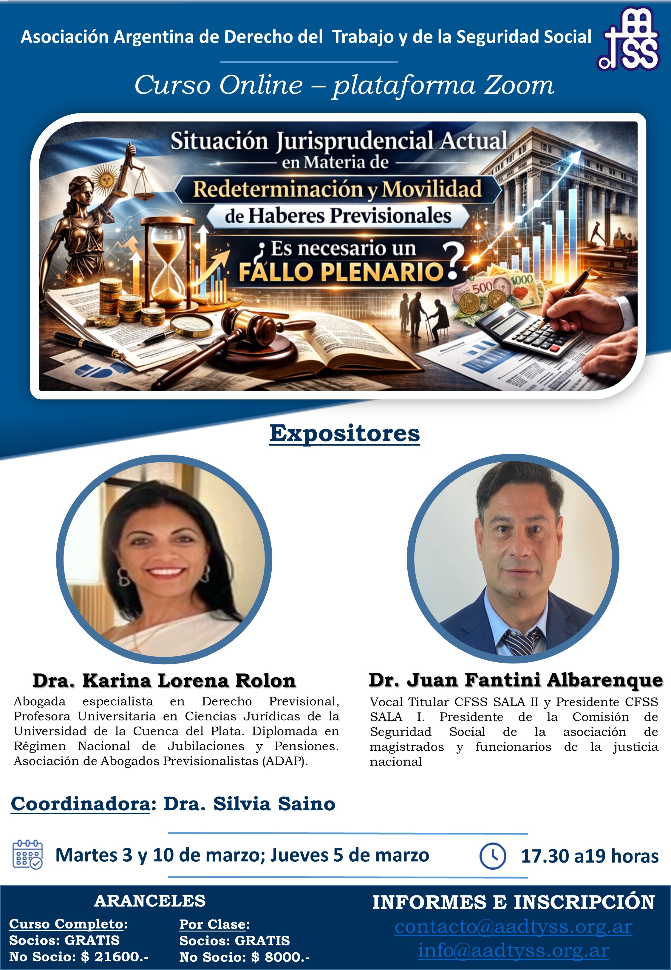 INFORMES E INSCRIPCIÓN contacto@aadtyss.org.ar ; info@aadtyss.org.ar